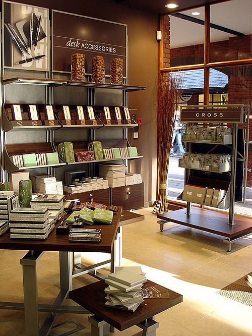 Factory Store Design- UK: Cheshire Oaks, England- 2007 Global factory store prototype. Project management included: design, fabrication, merchandising and installation of 900 sq. ft. in line store. Featured products: writing instruments, small leather goods, timepieces, stationery, and business tote bags. |